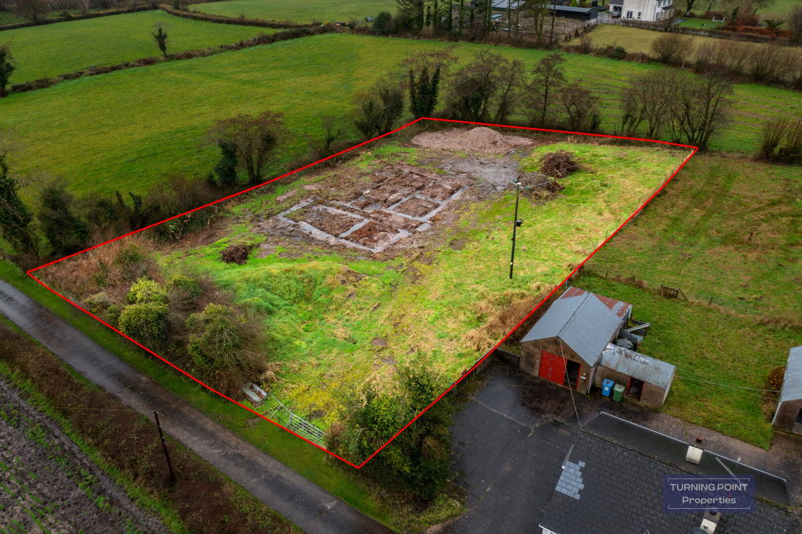 Turning Point Properties offer for sale this Building site which has been granted Full Planning Permission for a proposed four-bedroom, two reception detached bungalow and garage. The site extends to c.0.6 acres and is accessed via a shared laneway.